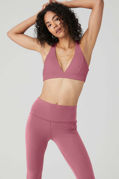 This bra is going places. The Show Stopper Bra features a plunging V-neckline, fixed shoulder straps, and a strappy racerback back made in velvety, breathable athelosoft fabric. A snug, ribbed band keeps it all together during low impact workouts. So perfect for making an iconic street statement and pairing with high-waisted bottoms for post-practice plans.