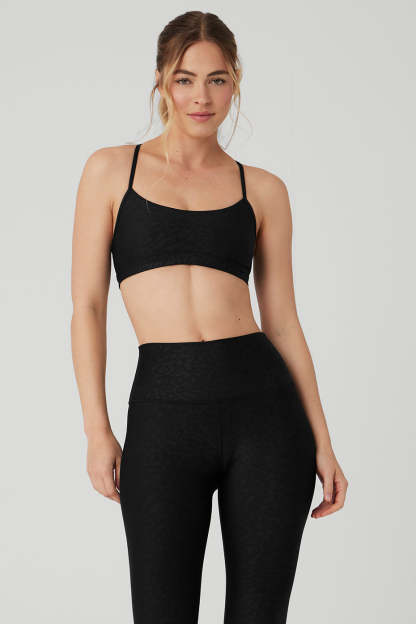 The Airlift Leopard Debossed Intrigue Bra is made in our signature, lifting & smoothing Airlift, with a fierce and playful performance leopard print. A keyhole cutout at the back and adjustable, crisscrossed straps boost this style*s studio-to-street appeal. Go wild head-to-toe with the matching Airlift High-Waist Leopard Debossed Leggings.