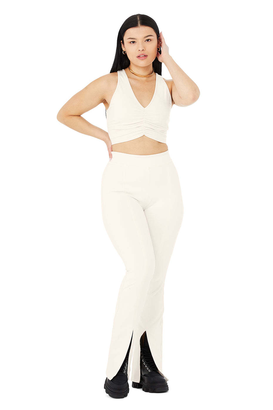A new silhouette for a new day. The Airbrush High-Waist Flutter Legging in sculpting performance Airbrush is sweet from every angle, with a skinny waistband & elevated front seams. A flared leg with front split adds extra ventilation (and is great for showing sneakers!), for a forward look that looks so good with a high-neck bra top.