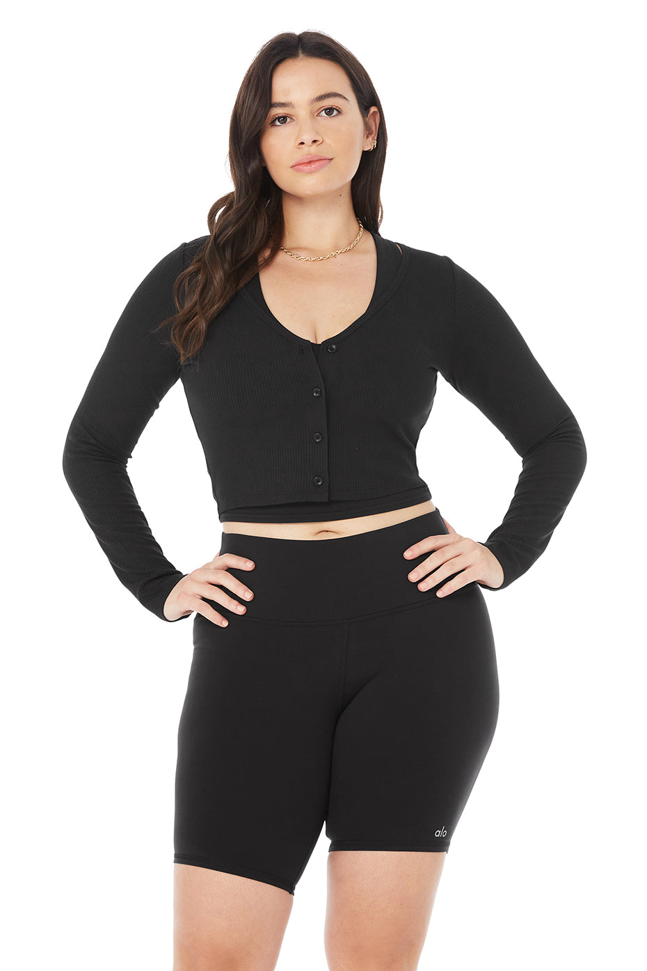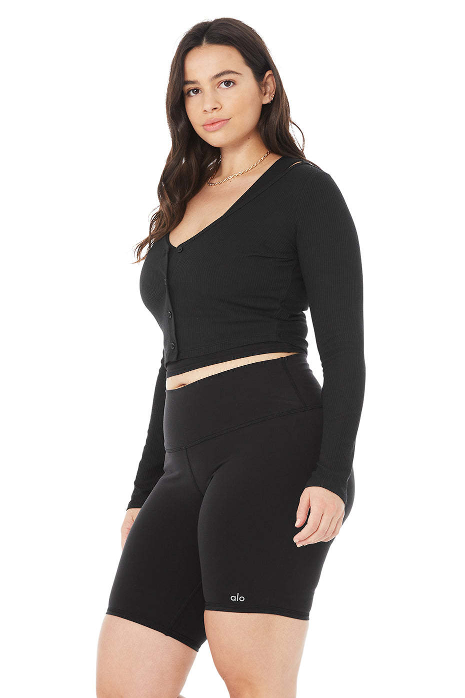 An ultra-cropped cardi with a pretty low V? Yes, please. The Ribbed Cropped Whisper Cardigan has a soft, lightweight feel and front button closure. Wear it with your favorite athelo bra and high-waist legging.