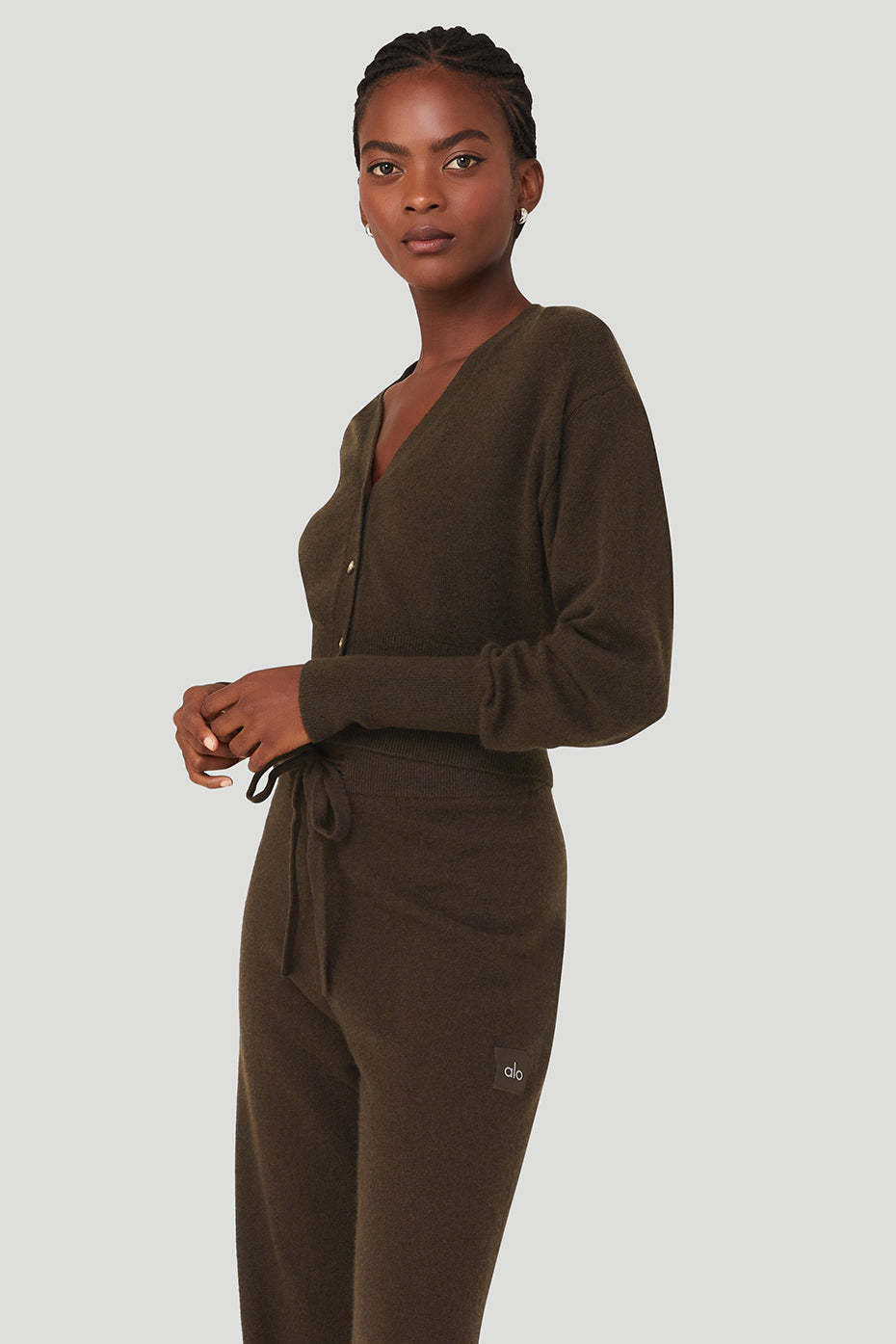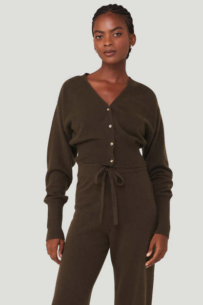 The luxuriously lived-in Cashmere Jet Set Cardigan is a cropped closet classic. Made from 100% cashmere yarn, it features a deep V-neckline, four-button front, and has ribbed cuffs and hem. It*s a perfectly relaxed fit that gets softer with each wear and pairs well with other cashmere and lounge favorites.